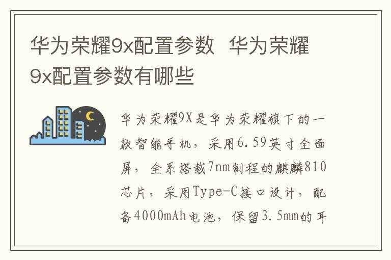 华为荣耀9x配置参数有哪些?华为荣耀9x配置参数(荣耀9x手机参数)