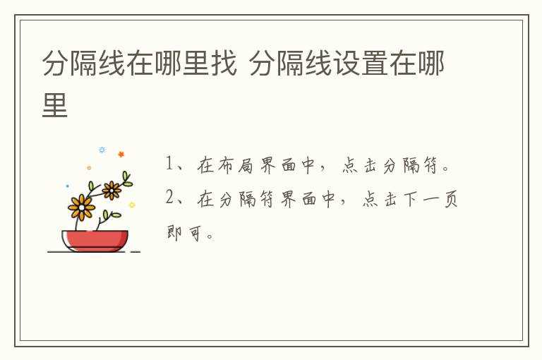 分隔线设置在哪里?分隔线在哪里找?(分隔线)