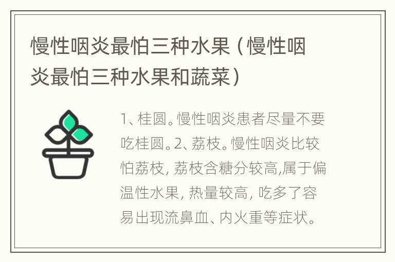 慢性咽炎最怕三种水果(慢性咽炎最怕三种水果和蔬菜)(咽炎最怕的三种水果)
