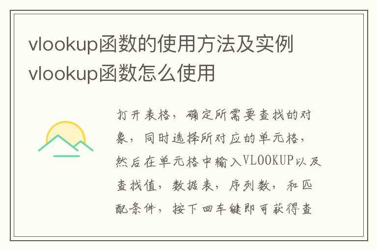 vlookup函数怎么使用?vlookup函数的使用方法及实例(vlookup函数的使用方法及实例)