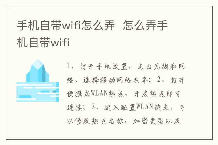 怎么弄手机自带wifi?手机自带wifi怎么弄?(手机wifi)
