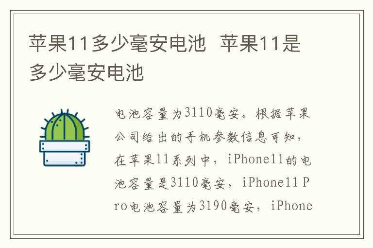 苹果11是多少毫安电池?苹果11多少毫安电池(iphone11电池容量)