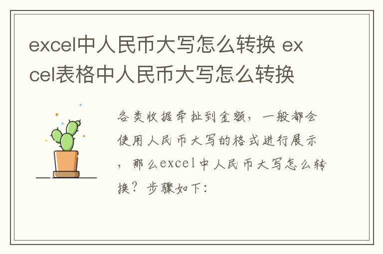 excel表格中人民币大写怎么转换?excel中人民币大写怎么转换?(excel 人民币大写)