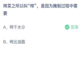 榨菜叫榨是因为腌制过程中需要什么 蚂蚁庄园2月21日答案