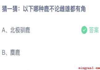 猜一猜以下哪种鹿不论雌雄都有角 蚂蚁庄园12月31答案