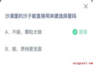 蚂蚁庄园沙漠里的沙子能直接用来建造房屋吗 小课堂12月15日答案