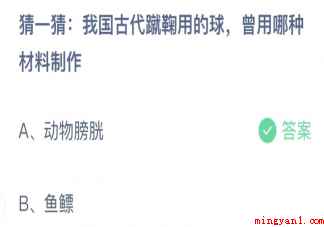 猜一猜我国古代蹴鞠用的球哪种材料制作 蚂蚁庄园12月9日答案