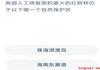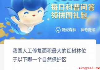 蚂蚁森林我国人工修复面积最大的红树林位于哪个自然保护区 神奇海洋12月1日答案