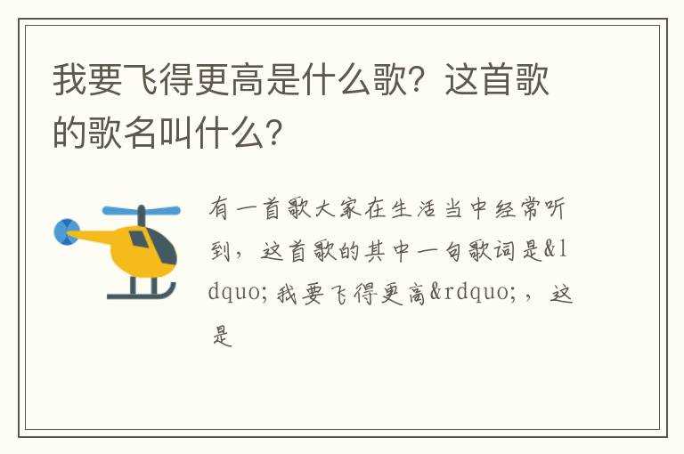 我要飞得更高是什么歌?这首歌的歌名叫什么??(我要飞的更高歌词)