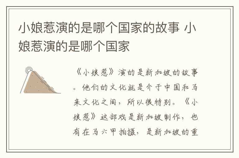 小娘惹演的是哪个国家?小娘惹演的是哪个国家的故事?(小娘惹是哪个国家的电视剧)