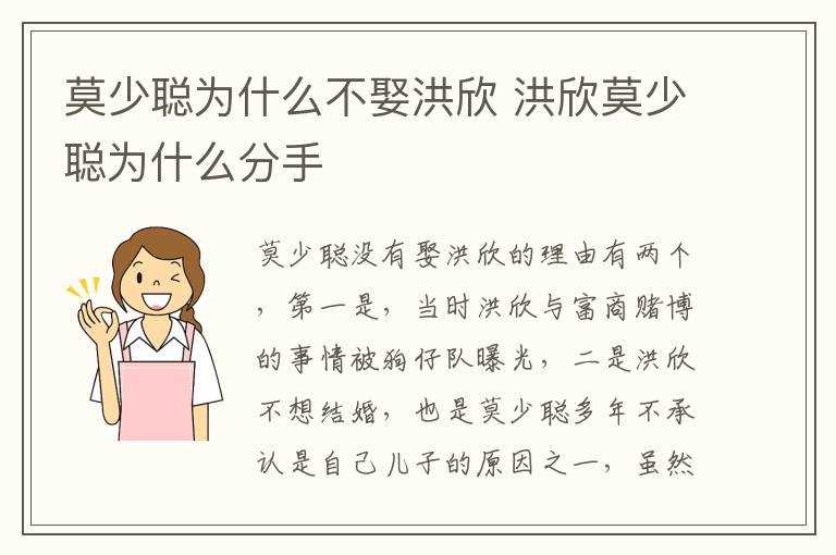 洪欣莫少聪为什么分手?莫少聪为什么不娶洪欣(莫少聪为什么不娶洪欣)