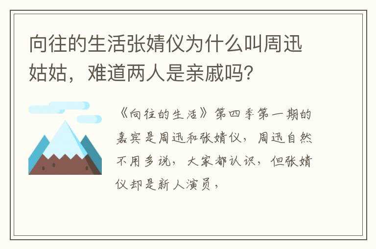 难道两人是亲戚吗???向往的生活张婧仪为什么叫周迅姑姑(周迅张婧仪)
