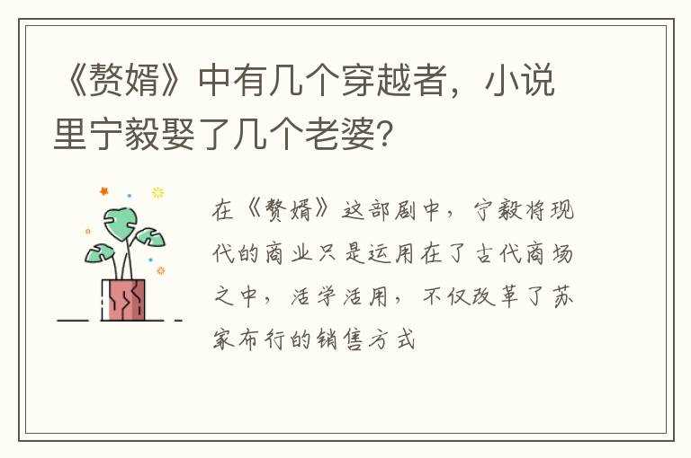 小说里宁毅娶了几个老婆??《赘婿》中有几个穿越者(赘婿有几个穿越者)