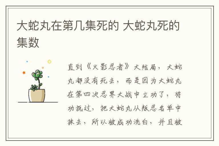 大蛇丸死的集数?大蛇丸在第几集死的(大蛇丸第几集死的)