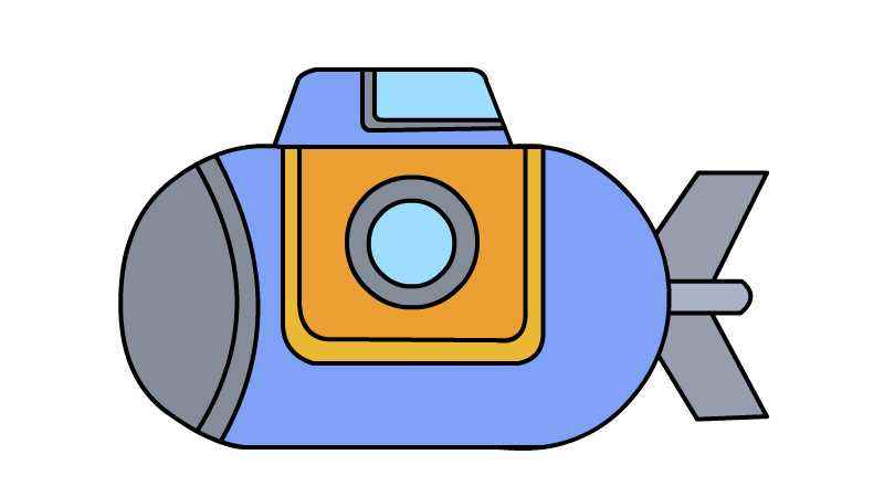 潜水艇简笔画(圆角矩形中画出潜水艇的船体)