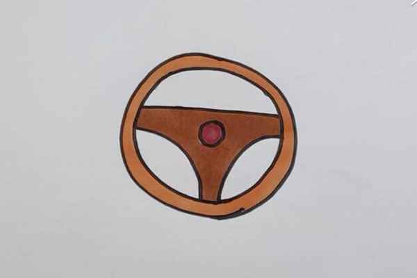 方向盘简笔画(圆圈小圆球涂上褐色就画好了)