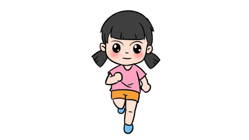 跑步简笔画(先画出小女孩的头部和两个小辫子)