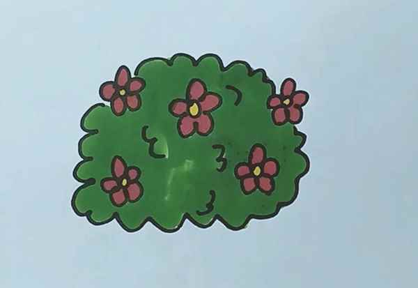 花丛简笔画(草丛涂上绿色就完成啦!)