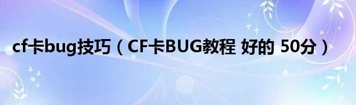 CF卡BUG教程_好的_50分_cf卡bug技巧(cf卡bug)