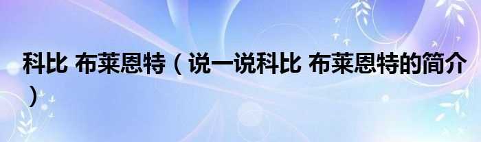 说一说科比_布莱恩特的简介_科比_布莱恩特(科比·布莱恩特)