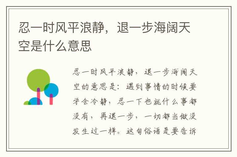 退一步海阔天空是什么意思?忍一时风平浪静(忍一时风平浪静退一步海阔天空)
