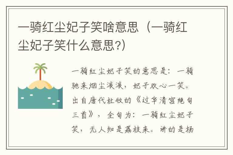 一骑红尘妃子笑啥意思(一骑红尘妃子笑什么意思?)?(一骑红尘妃子笑)