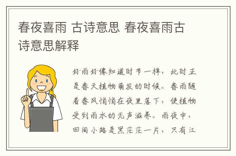 古诗意思_春夜喜雨古诗意思解释_春夜喜雨(春夜喜雨 古诗)