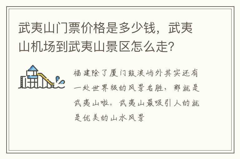 武夷山机场到武夷山景区怎么走??武夷山门票价格是多少钱(武夷山怎么去)