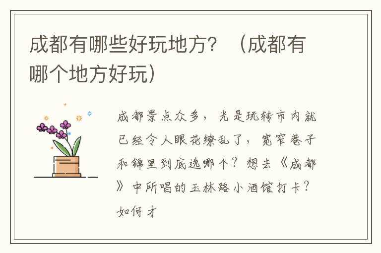 成都有哪些好玩地方?(成都有哪个地方好玩)?(成都好玩吗)
