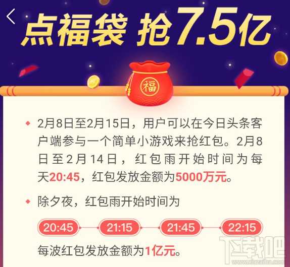 今日头条红包雨怎么获得?红包雨抢法攻略? 今日头条红包雨怎么获得?据悉,今日头条红包雨每天准时开始,我们一起看看这个红包雨的具体玩法吧,希望能帮到你。红包雨时间:2月8日-2月14日,红包雨开始的时间是20:45,红包发放金额为50 游戏攻略 2023-03-31 0 次查看