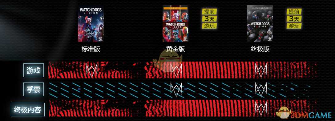 《看门狗3:军团》各版本包含内容一览 《看门狗3:军团》现在开启了预购,游戏分为标准版、黄金版和终极版,一个版本比一个版本贵,包含的内容也增加了,很多玩家还不清楚这些版本有什么区别,下边就给大家带来看门狗3军团各版本包含内容一览 游戏攻略 2023-03-30 0 次查看