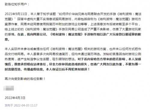 生事者道歉信到底能否被玩家接受?_哈利波特手游被抹黑 最近,某知名问答平台上的一则道歉公告引起了人们的关注。这则道歉公告,是写给《哈利波特:魔法觉醒》手游的。事件起因是因为一位用户在某知名问答平台上,公开表示《哈利波特:魔法觉醒》手游抄袭了自己 游戏攻略 2023-05-18 0 次查看