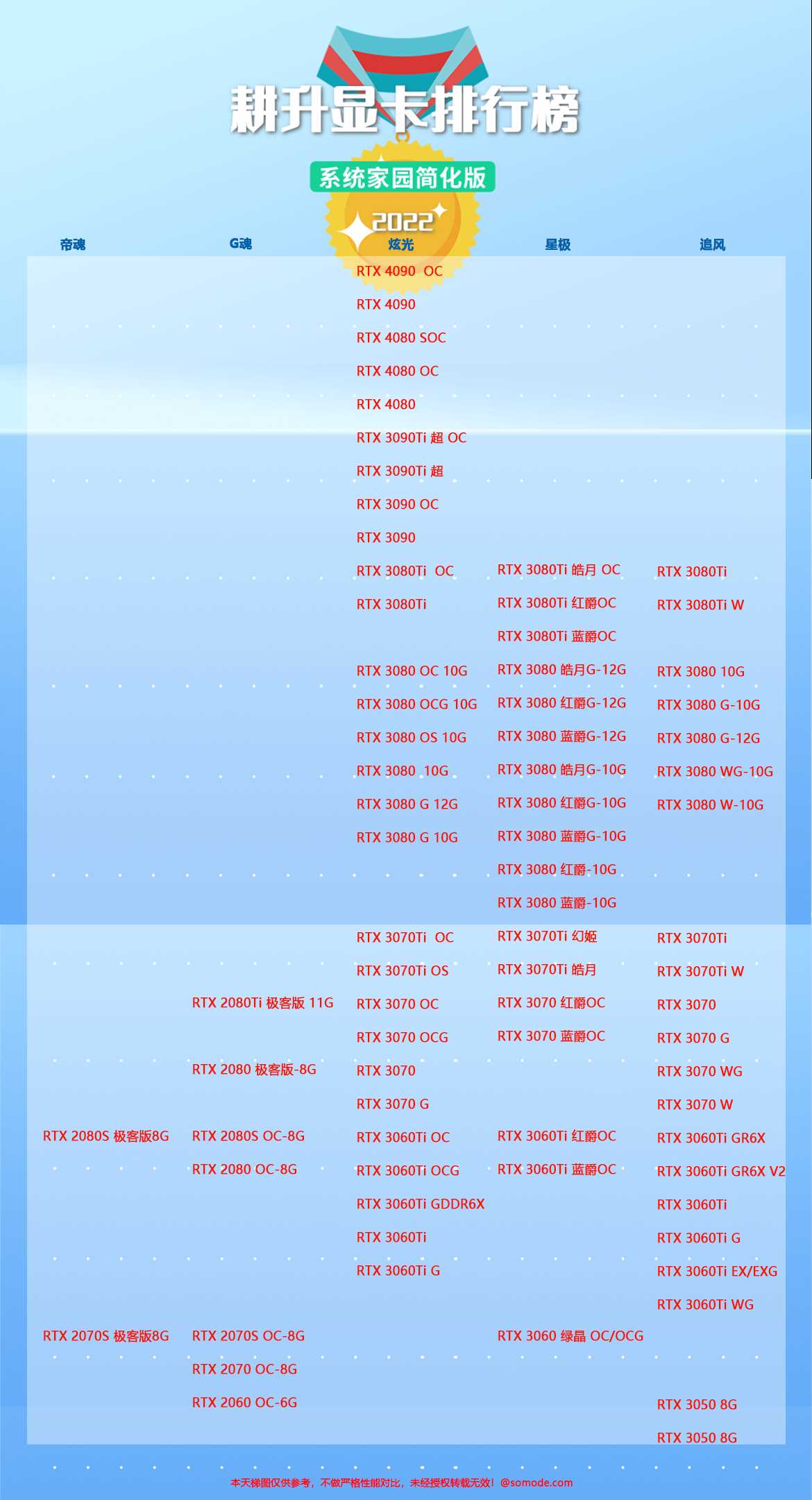 耕升显卡系列天梯图2023(2月)